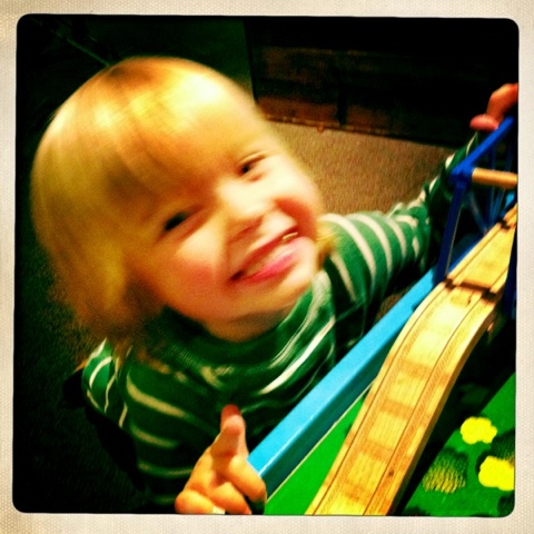 Back at the railroad museum. Such a magical place! Stenn is IN LOVE WITH CHOO CHOO TRAINS! He could play with trains for two hours at a time without breaking focus. Hmmm wonder what this little conductor will be getting for his birthday and Christmas?! Love the last photo - you can see his little lips saying "choooo chooo!"